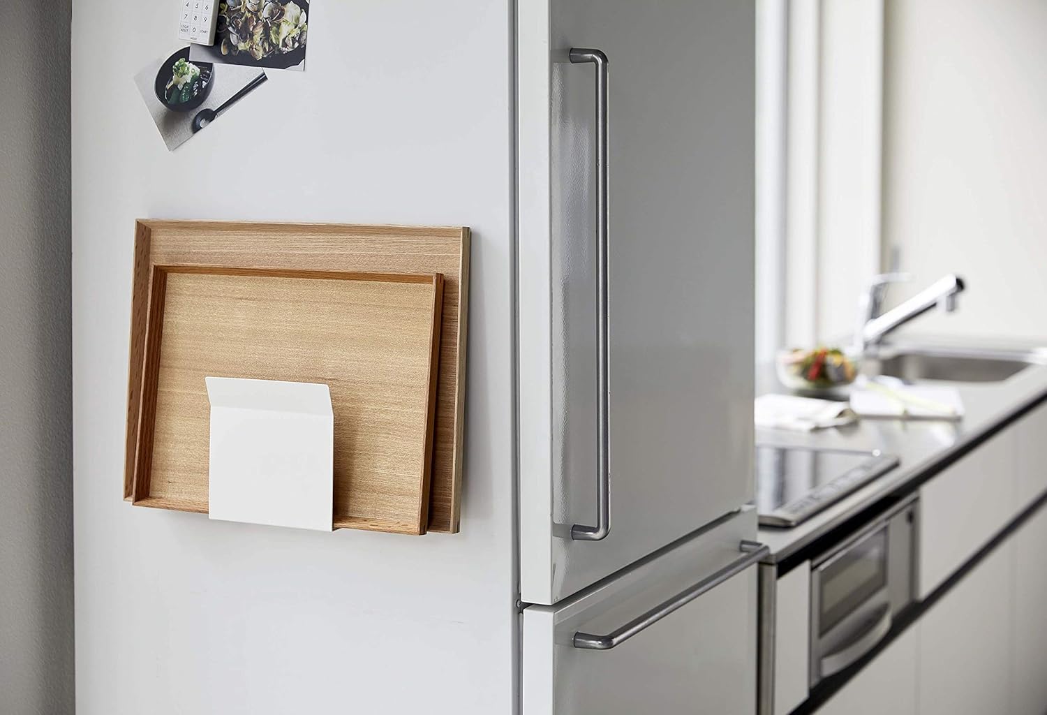 山崎実業(Yamazaki) マグネットトレーホルダー ホワイト 約W15XD6.5XH15cm プレート キッチントレー収納 円形トレー収納可 5026