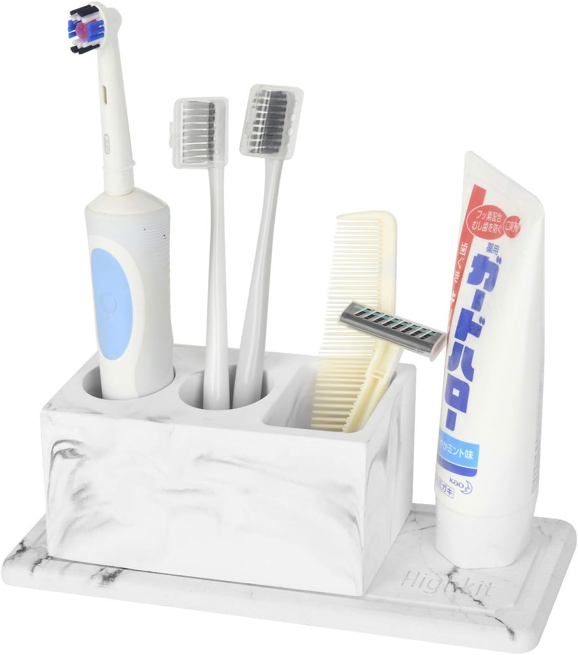 Highkit 吸水 珪藻土 歯ブラシスタンド 速乾 歯ブラシたて 電動歯ブラシ置き おしゃれ 洗面所 収納 歯ブラシホルダー 珪藻土トレー付 (大理石 )